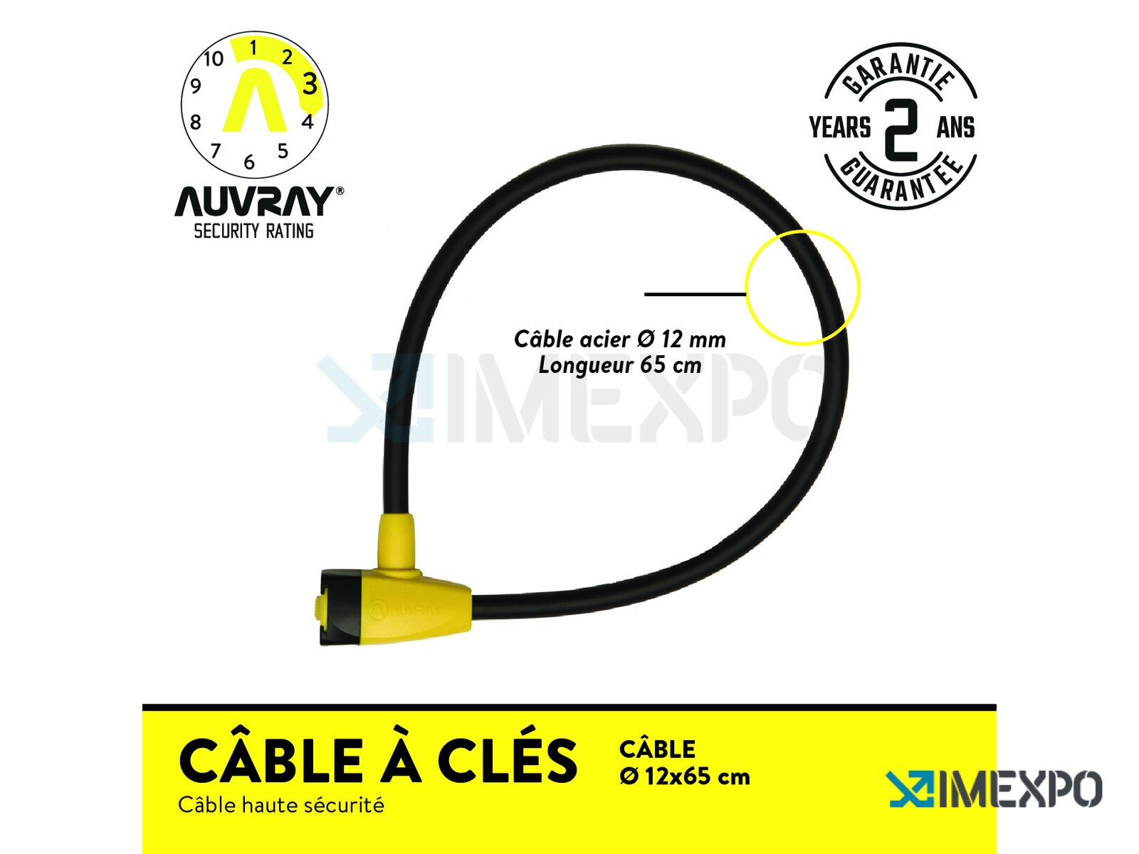 Auvray zámek kabel Cable Velo 65cm 12mm je ideální volbou pro bezpečné zajištění vašeho kola.