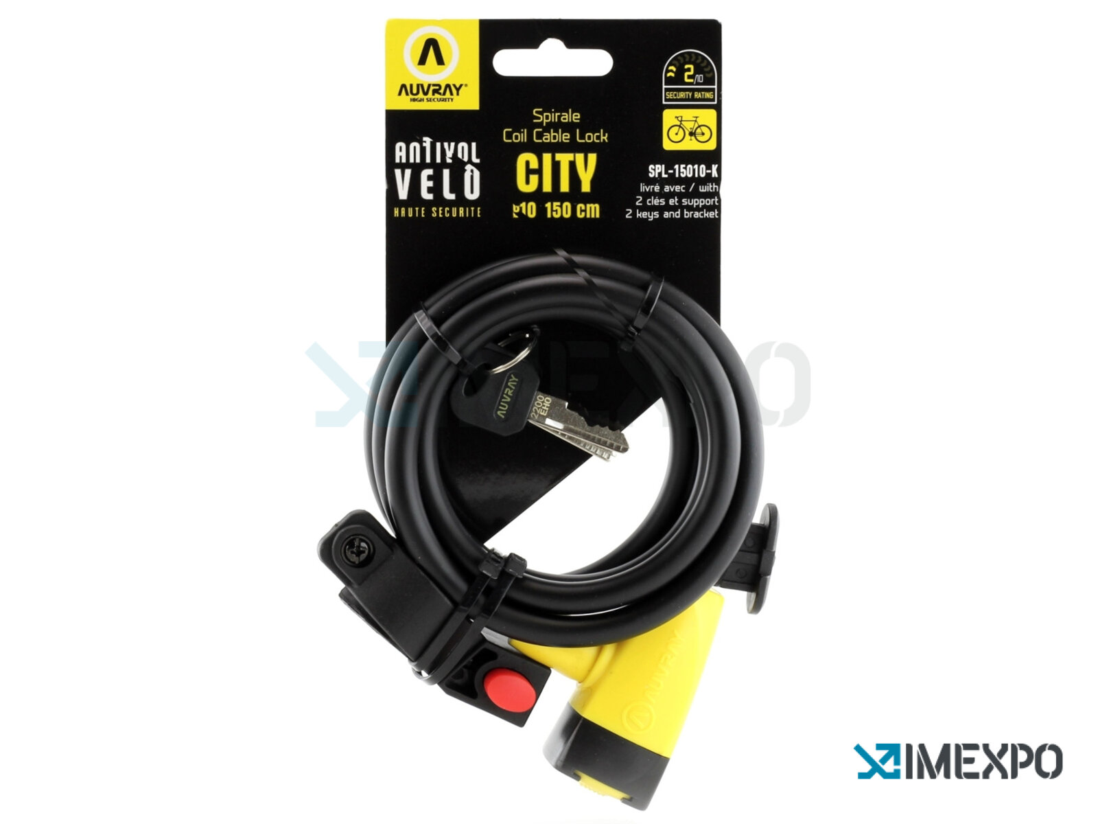Auvray zámek spirálový Spirale City 150cm 10mm je ideální volbou pro bezpečné zajištění vašeho kola. Díky své délce 150 cm a průměru 10 mm poskytuje dostatečnou flexibilitu a pevnost pro pohodlné připoutání k pevným objektům.