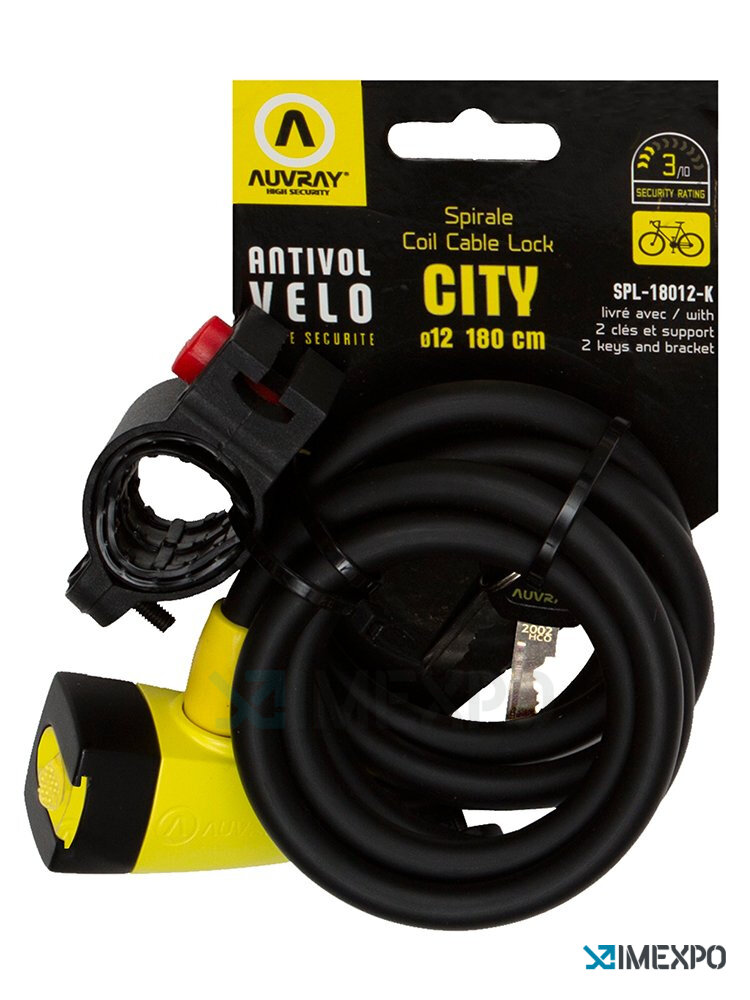 Zámek spirálový Auvray Spirale City je praktickým řešením pro bezpečné zabezpečení vašeho kola. Délka 180 cm nabízí dostatečný prostor k uzamčení rámu i kol, zatímco průměr 12 mm poskytuje spolehlivou ochranu proti odcizení. S hmotností pouze 0,49 kg je zámek lehký a snadno přenosný, což oceníte při každodenním používání. Díky spirálovému provedení se snadno přizpůsobí různým situacím a umožní pohodlné uchycení.