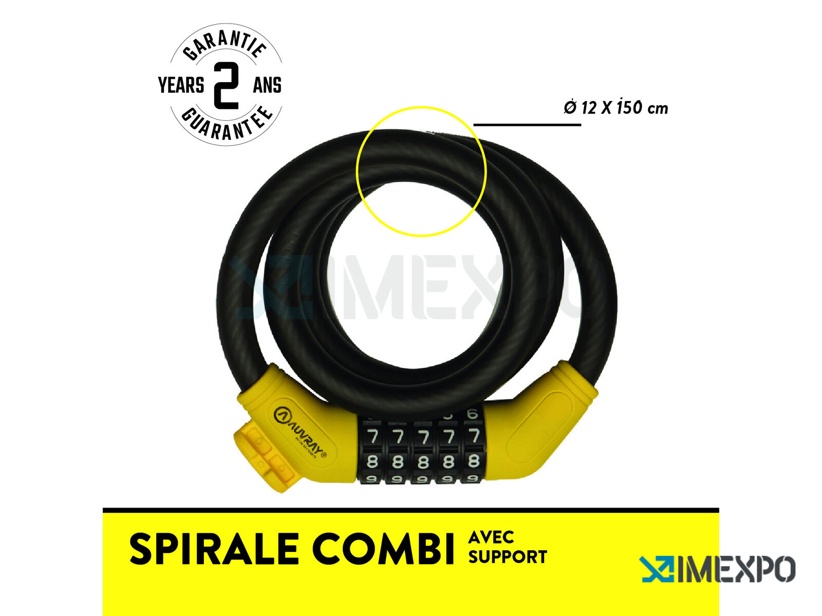 Spirálový zámek Auvray Spirale Combi je spolehlivý ochranný doplněk pro vaše kolo či jiné cennosti. Jeho délka 150 cm a průměr 12 mm zaručují dostatečnou flexibilitu i bezpečnost. Silná spirálová konstrukce odolává běžným pokusům o překonání zámku.