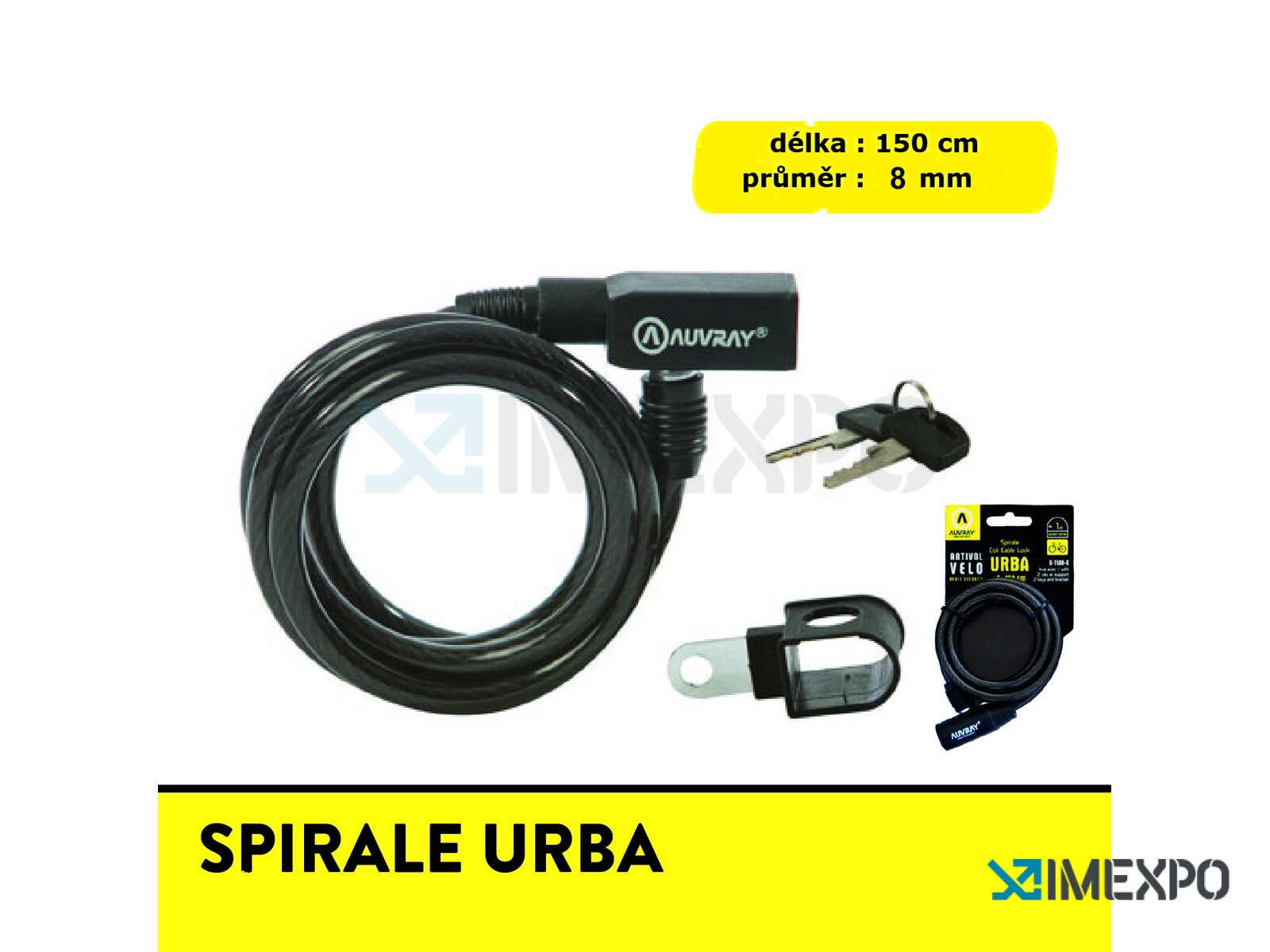 Auvray zámek spirálový Spirale Urban 150cm 8mm je praktické bezpečnostní řešení pro zajištění vašeho kola. Díky své délce 150 cm umožňuje pohodlné připevnění kola k pevnému objektu, zatímco průměr 8 mm zajišťuje dostatečnou odolnost proti přeříznutí. Tento lehký, ale pevný zámek váží pouze 0,25 kg, což ho činí snadno přenosným a ideálním pro každodenní použití.