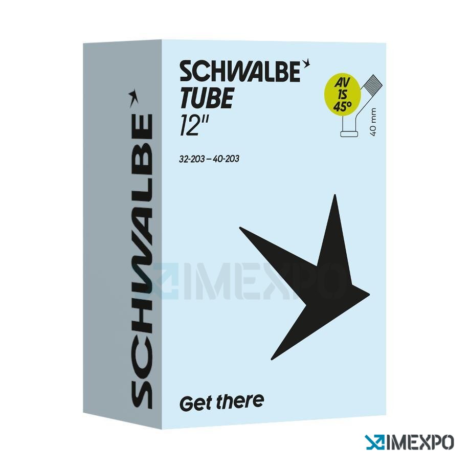 Schwalbe duše 12" AV1 45/45 47/62-203 40mm je perfektní volbou pro kola s rozměrem pláště od 47/62 do 203. Tato duše disponuje auto ventilem o úhlu 45°, který usnadňuje nafukování a zajišťuje bezpečné uchycení.