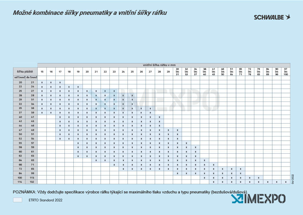 Tabulka šířky plášťů a ráfků new