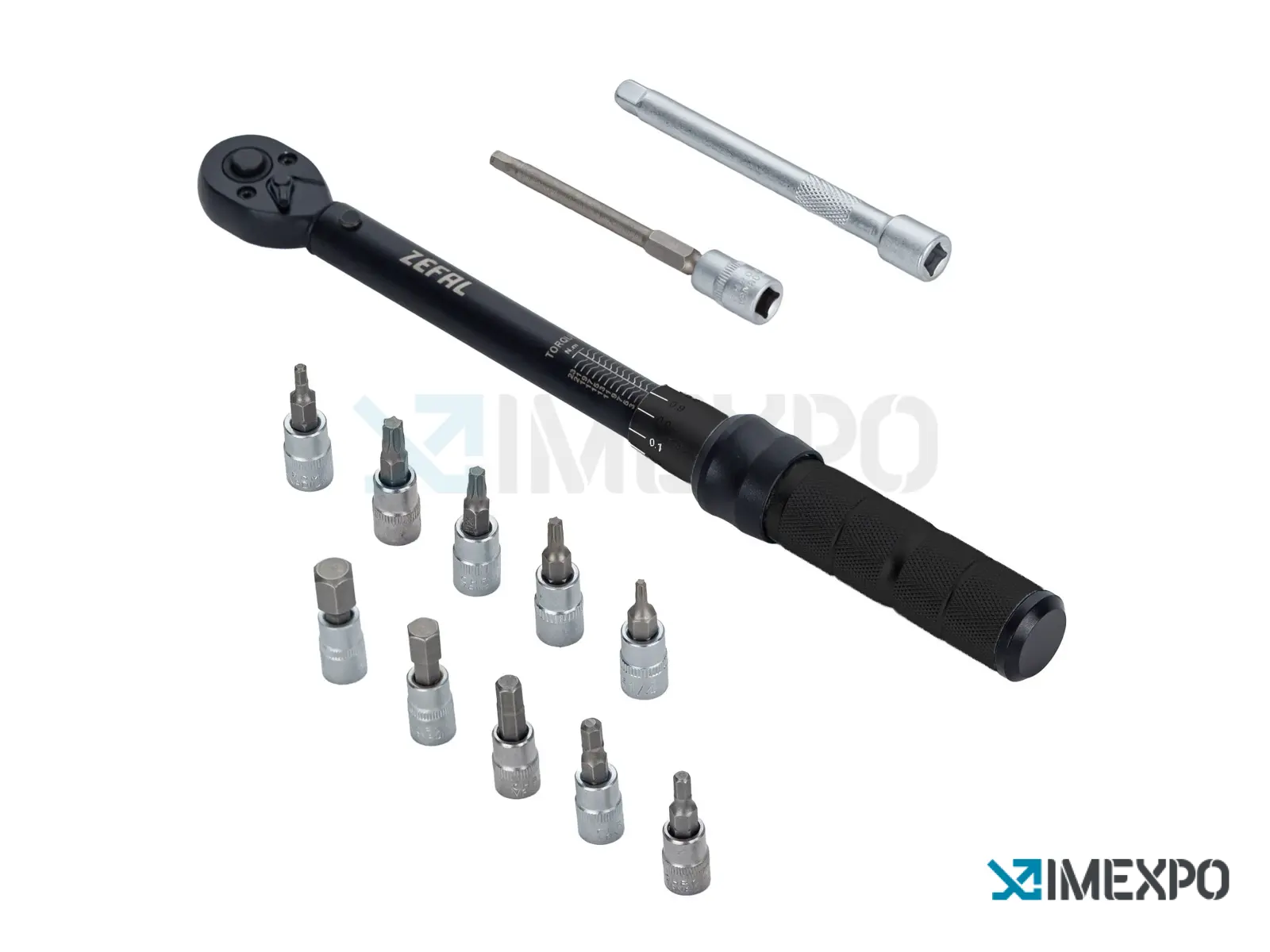 Momentový klíč Z je dodáván s kompletní sadou bitů: 3, 4, 5, 6, 8 a 10 mm šestihranné bity, 10, 20, 25 a 30 Torx bity, prodloužení a 4 mm bit speciálně pro brzdové třmeny.